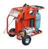 Manual start switch with water tight enclosure 7foot electrical cord Tripe industrial pump with ceramic plungers Forged brass manifold with variable pressure Chemical injector with soap metering valve Use the LPG or NG to fast heat Collocate thermal protector and Battery Steel frame with 10inch pneumatic wheels 35ft high-pressure hose with3/8in quick-couplers 5 Quick coupled nozzles:0°(red)15°(yellow)25°(green)40°(white)and 50°(black soap tip) The power,phase,voltage can be changed by customer